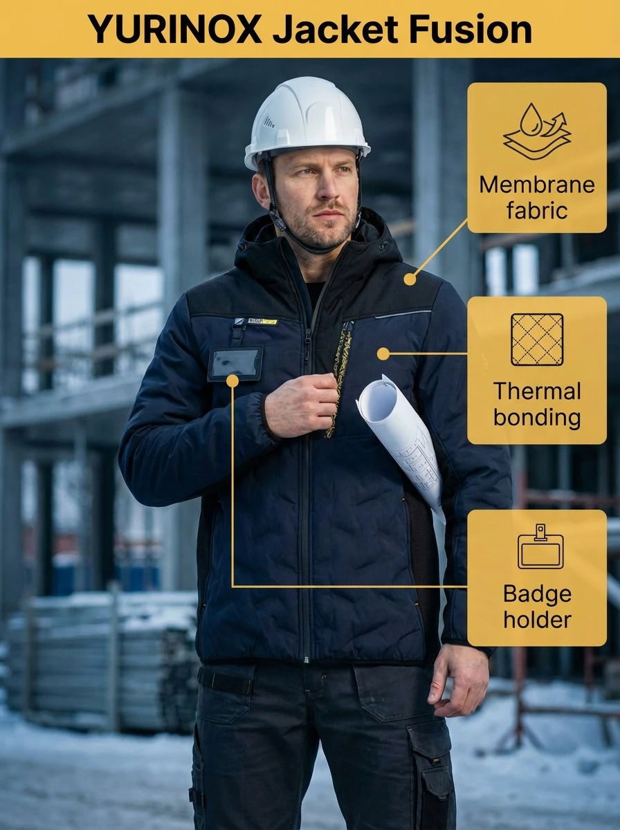 The YURiNOX Fusion Demi-Season Jacket is designed for professionals who work in changing weather and demanding conditions. Built with thermal bonding technology, it prevents insulation clumping and improves wind and rain protection while maintaining consistent warmth.