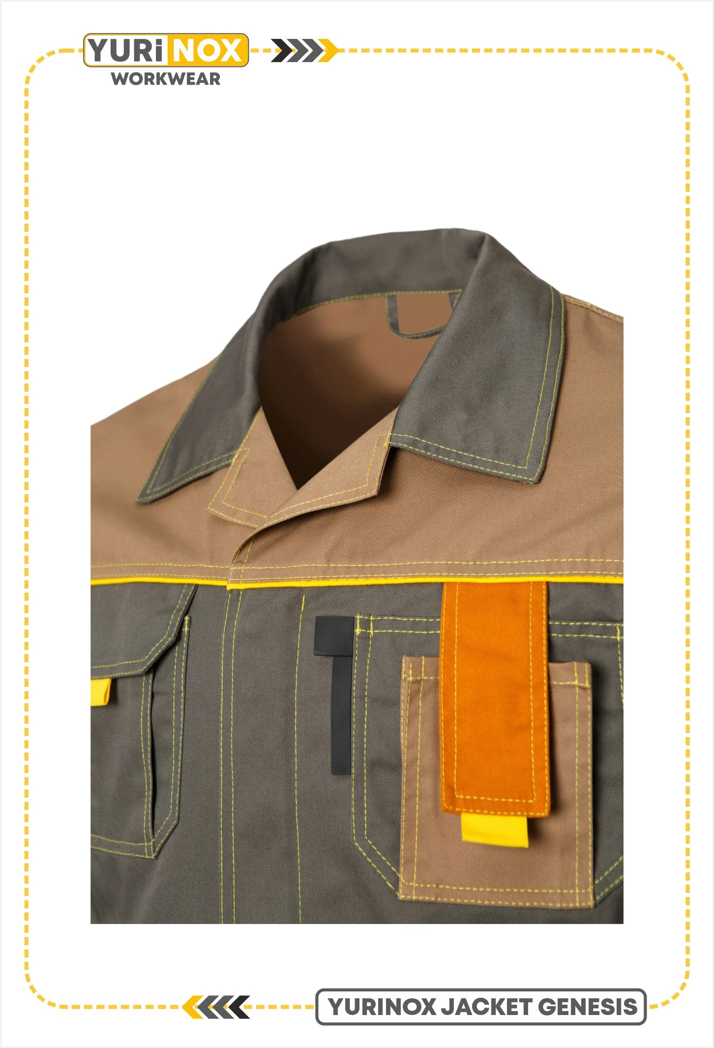 The YURiNOX GENESIS Heavy Duty Construction Jacket delivers reliable protection and comfort for demanding work environments. Constructed from ERGOSTAFF+ blended fabric, this jacket features a central zipper with a windproof flap, reinforced elbows, and breathable underarm mesh to ensure comfort and durability. Advanced Klaydex Cube Dye technology keeps colors vibrant even after 100+ industrial washes, while double-stitched seams provide additional strength. Ideal for carpenters, builders, locksmiths, and other trades requiring long-lasting, heavy-duty workwear.