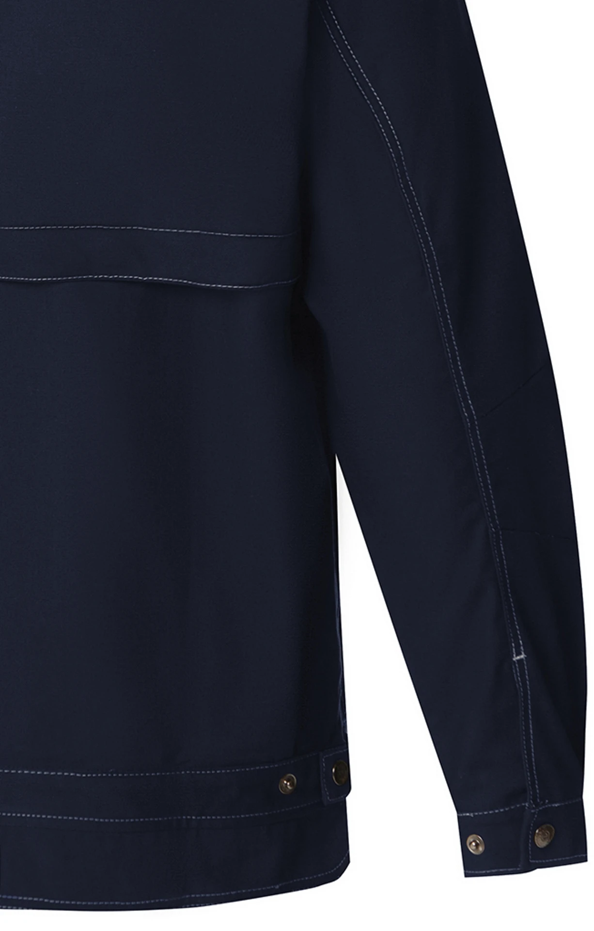 Streamlined Cut, Central Side Zipper, Stand Collar, Two-Button Closure Pockets, Adjustable Waistband, Elongated Back